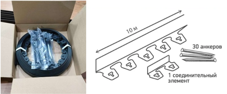 Поставляется комплектом в коробке с соединительным элементом и крепежными анкерами (30 шт.).
