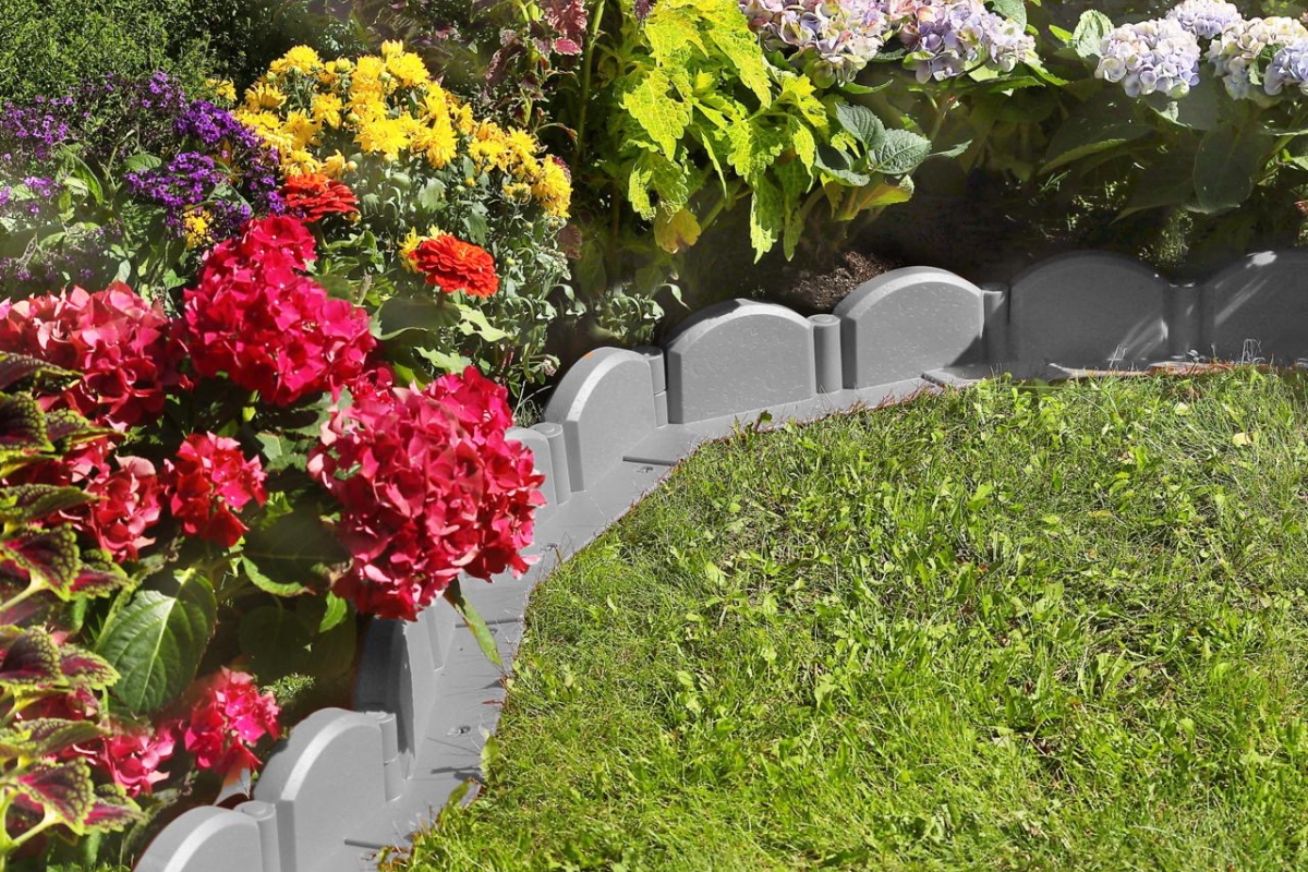 - Естественный вид: текстура бордюра имитирует глиняное ограждение, гармонично вписываясь в любой садовый ансамбль
