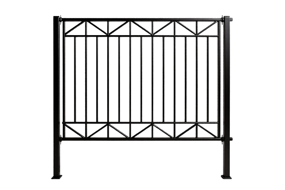 - сочетает функциональность и эстетичность: строгие вертикальные линии обеспечивают надёжность, а декоративные треугольные элементы придают конструкции аккуратный внешний вид;