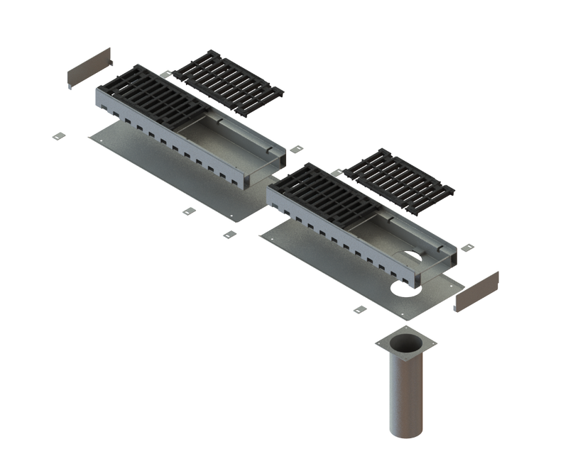 - Линейного водоотвода серии SteelMax. Классическая система водоотвода, включает в себя водоотводные лотки, изготовленные из оцинкованной стали, которые дополняются защитными решётками из высокопрочного чугуна с классом нагрузки С250 и выше. Преимуществом данной системы является её высокая эффективность на пролетных строениях всех типов с гидроизоляцией из любого материала. Система собирает поверхностный и дренажный сток, отводя их за пределы пролетного строения.