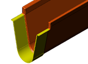 Фасадные (карнизные) лотки предназначены для использования на фасадах моста без использования трапов. Помимо функции водоотвода, они выполняют еще защитную и декоративную функции торца пролетного строения вместо карнизных блоков. Фасадные лотки изготавливаются в двух вариантах – полкой и без неё. Лотки с полкой используются, когда собственный продольный уклон моста достаточный для эффективного водоотвода. Если уклона нет, лотки без полки позволяют наклонить систему относительно пролета, обеспечив уклон. В этом случае торец лотка закрывается капельником (карнизная планка).