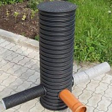 - Наличие разных типоразмеров полимерных труб позволяет сооружать дренажные системы различной производительности. Так, в тех местах, где необходимо отводить большое количество воды, необходимы трубы большого диаметра. В этих случаях, выбирают трубы, имеющие диаметр 300-400 мм. В большинстве случаев, достаточно использовать диаметром до 200 мм для частной территории.