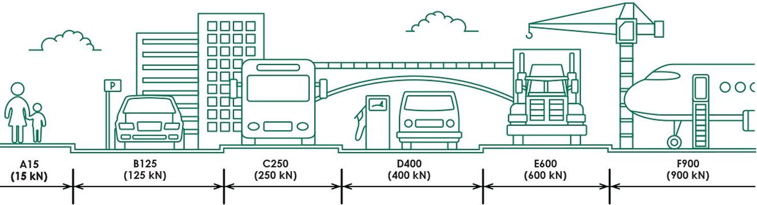 При подборе чугунных люков или решёток для водоотводных лотков необходимо учитывать предполагаемые условия эксплуатации: пешеходное движение, проезд легкового транспорта, движение грузовых автомобилей или воздействие авиационной техники.